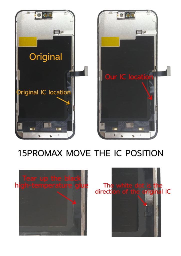 When transferring the original IC to an IMAX aftermarket screen, the flexible circuit board that comes with the aftermarket screen must be used.
