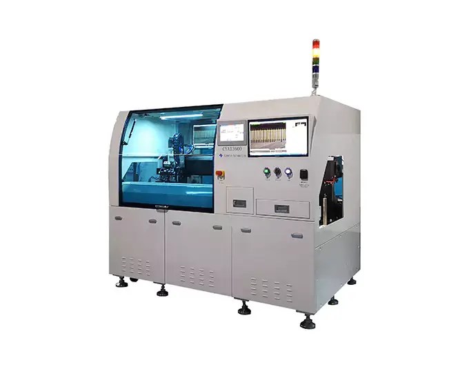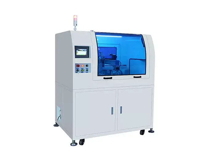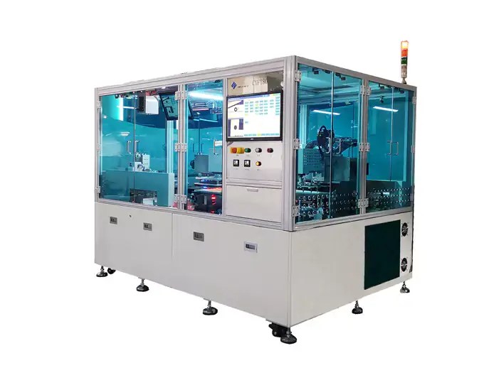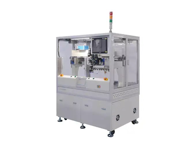 This machine is used for laminating screens’ FPC automatically. It can measure the growth and shrinkage of main parts before fitting and the precision position after fitting. The laminating process directly affects the quality of display.